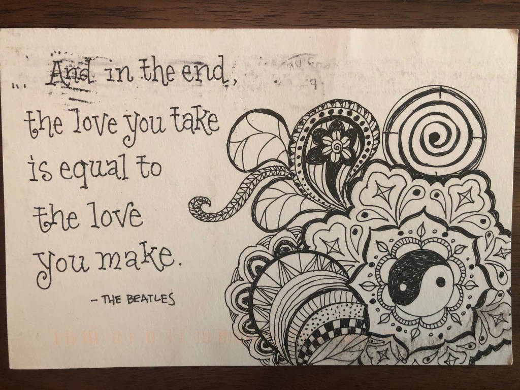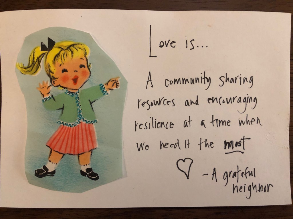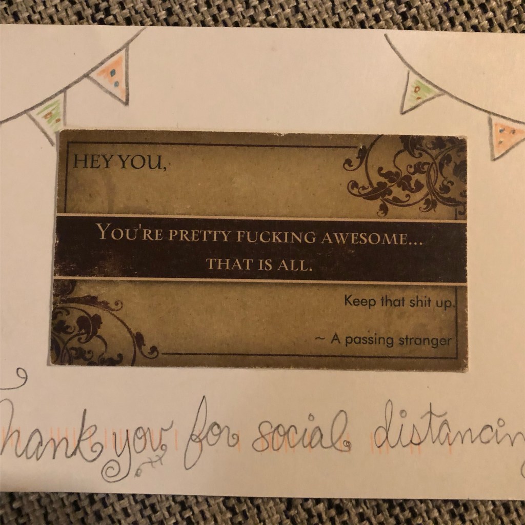 DIY a quick and easy postcard out of packaging from your most crucial pandemic supplies ie: girl scout cookie and beer boxes!