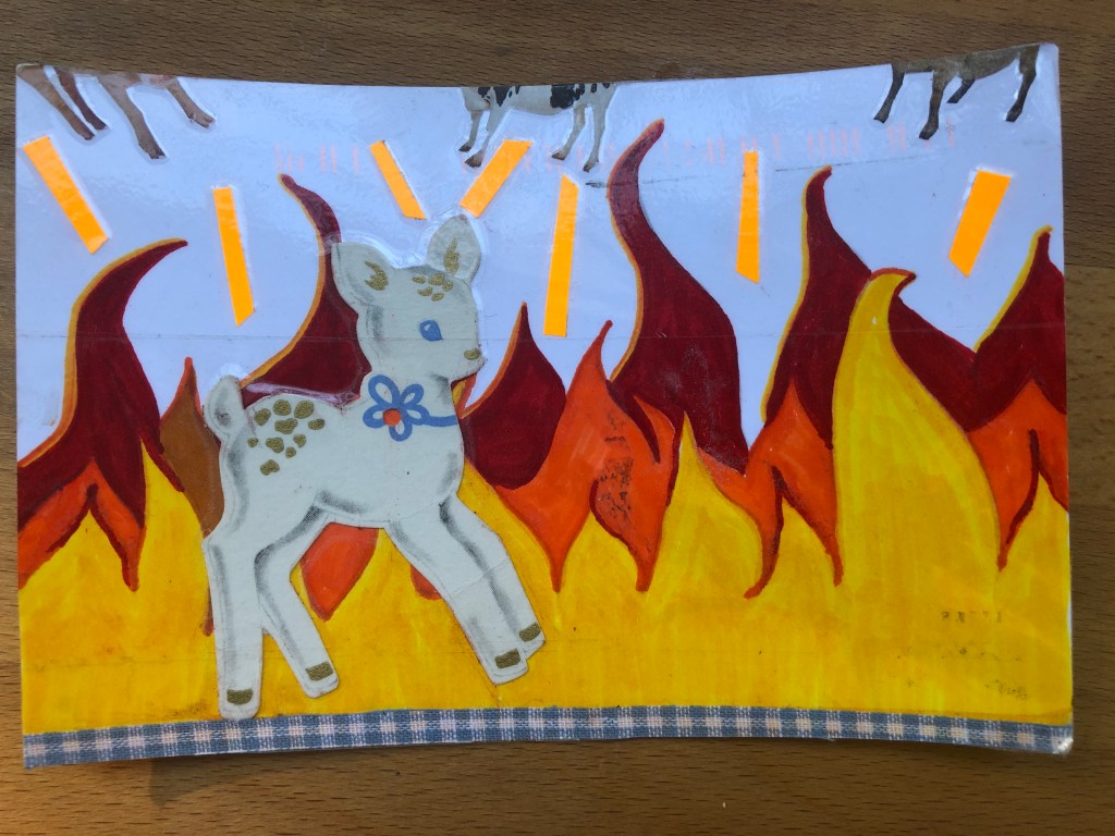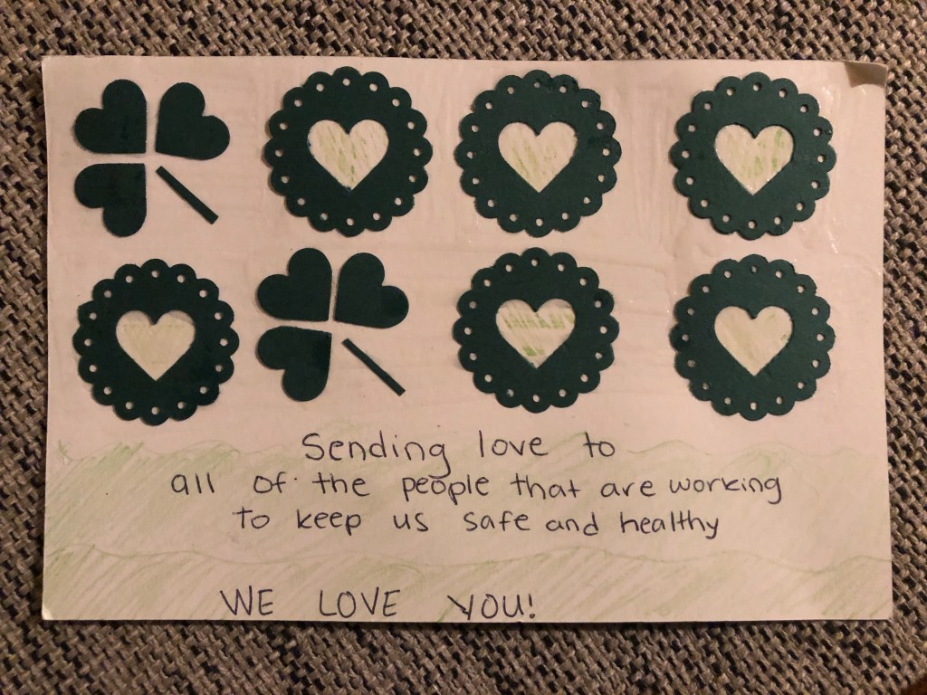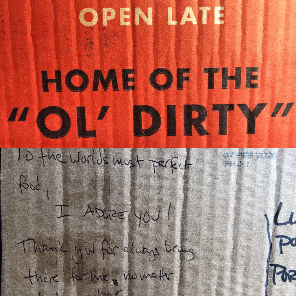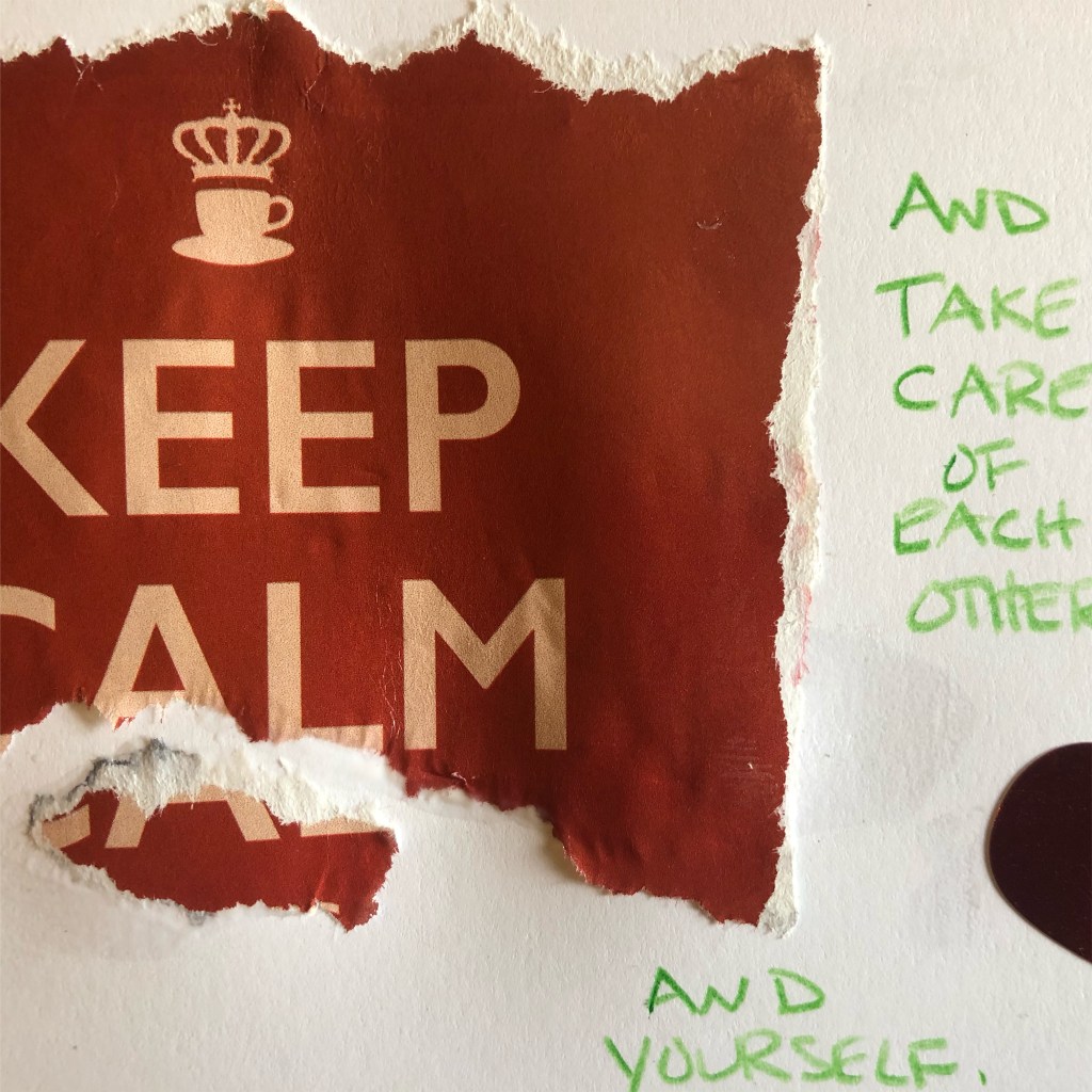 DIY a quick and easy postcard out of packaging from your most crucial pandemic supplies ie: girl scout cookie and beer boxes!
