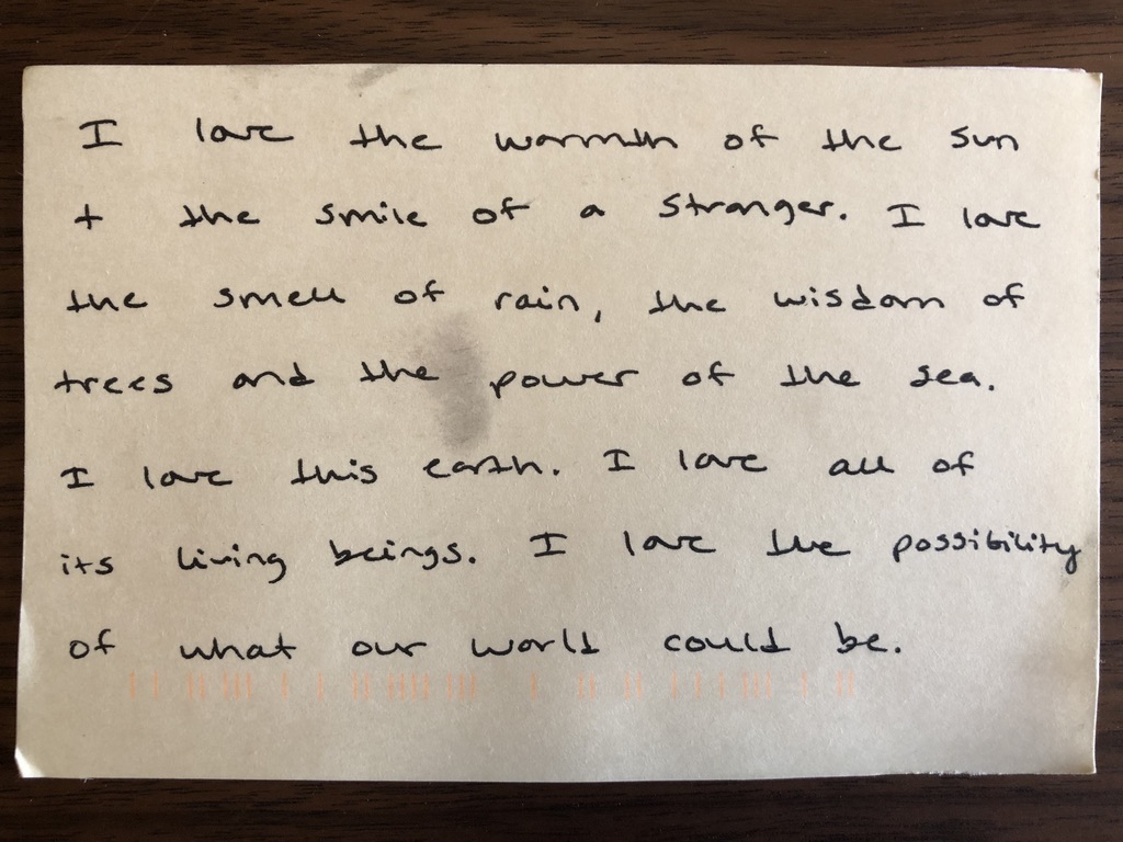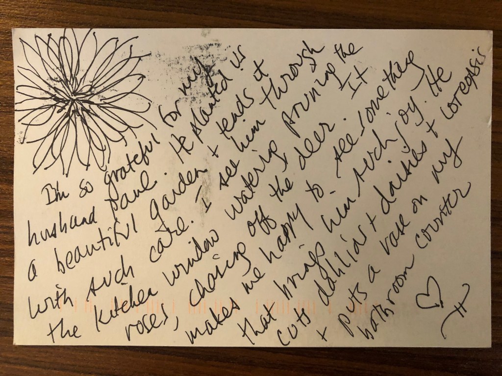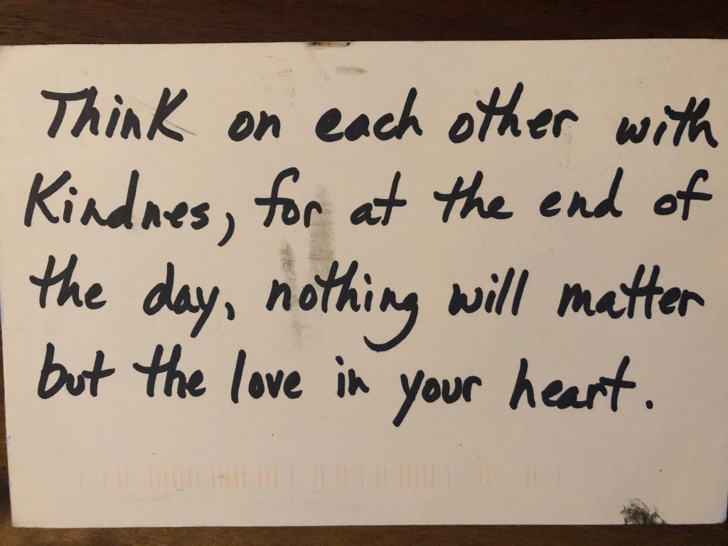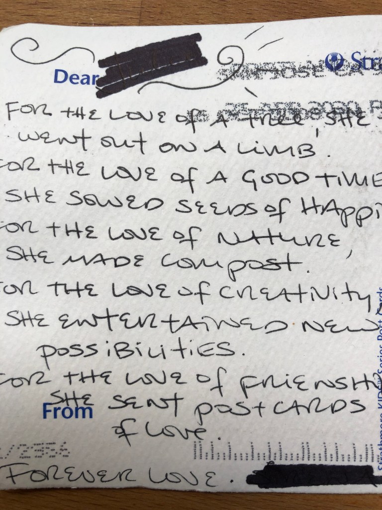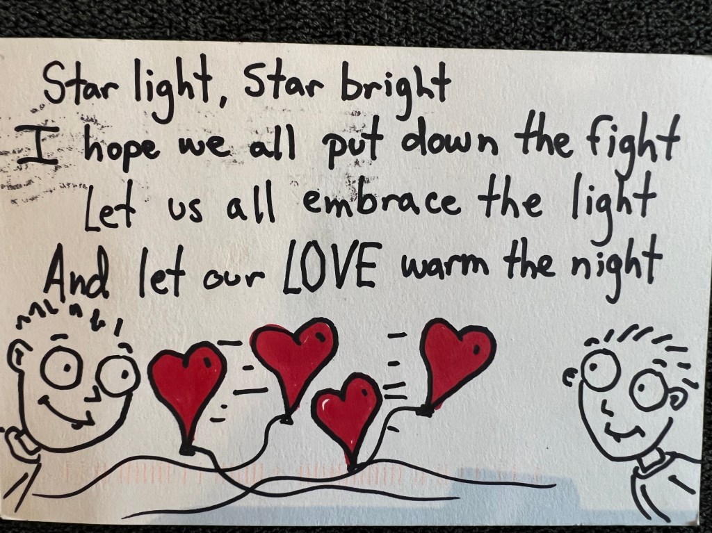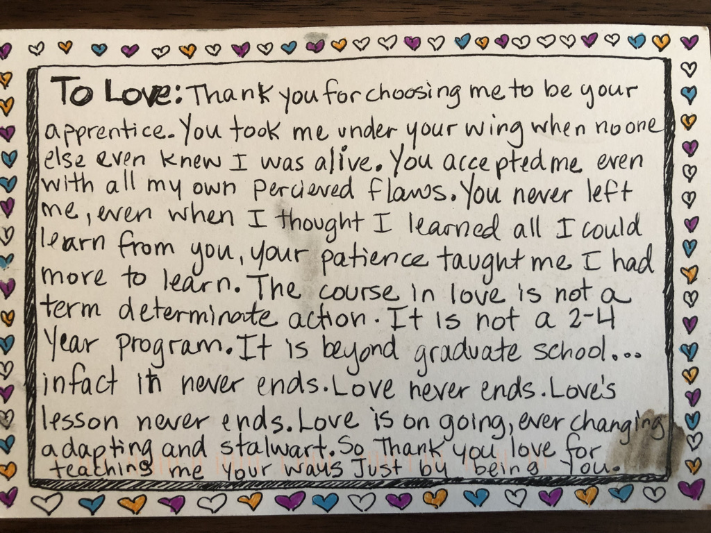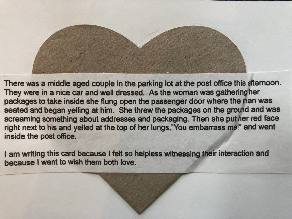 I am writing this card because I felt so helpless witnessing their interaction and because I want to wish them both love.